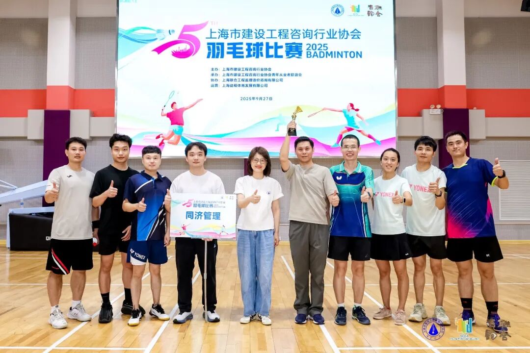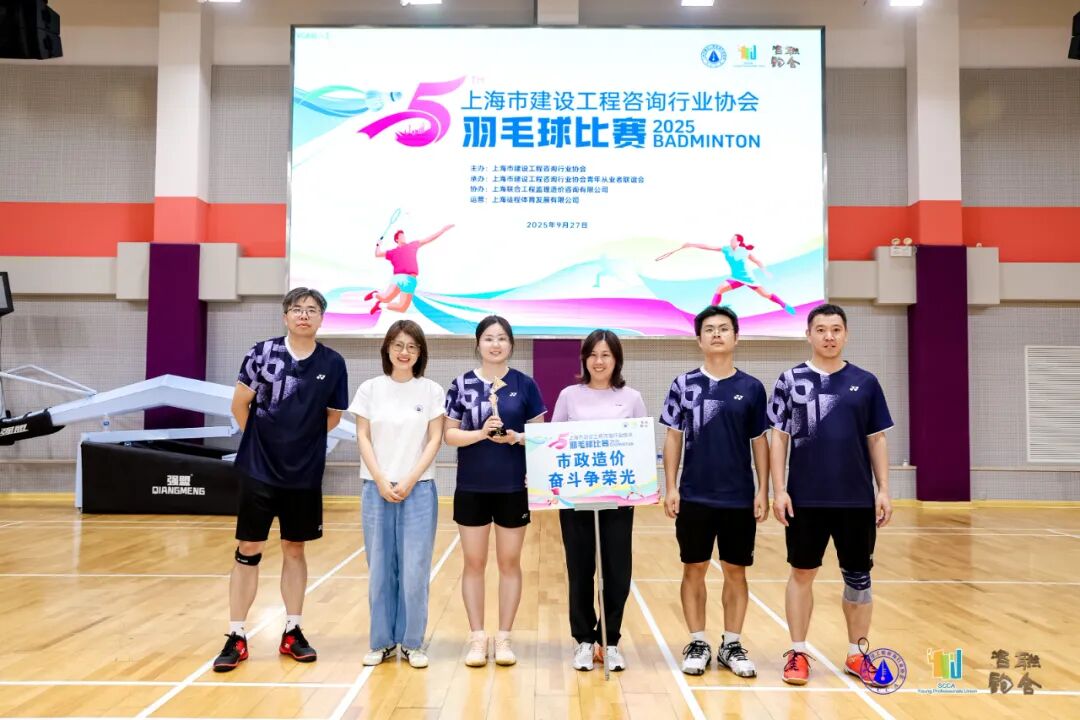 在赛场上,各参赛选手全力以赴,拼搏至最后一刻,无论是大力扣杀时的专注眼神,还是网前缠斗时的灵活应变,彰显出各队伍的坚韧斗志和高超技艺。最终,由上海同济工程项目管理咨询有限公司“同济管理队”夺得本次比赛的冠军。上海市政工程造价咨询有限公司“市政造价奋斗争荣光队”荣获亚军。上海市城市建设设计研究总院(集团)有限公司“城建羽林 羽你同行队”和上海华城工程建设管理有限公司“羽动芳华,众志成城队”并列获得季军。
