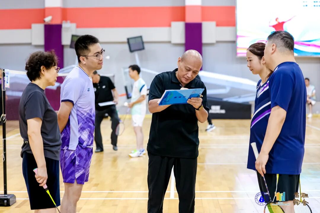 一场赛事的精彩与公正,离不开专业力量的坚实保障。为了确保比赛的公平性和公正性,特邀上海市羽毛球协会的注册裁判员、国家级裁判席松林担任本次比赛的裁判长。裁判团队中还有2名国家级裁判,分别是担任本次比赛的编排长葛幼飞、检录长毛艳,他们曾担任过北京奥运会、亚运会、东亚运动会以及国内外重大赛事裁判及编排记录工作;同时还有8位临场裁判,也都是国家注册一级裁判员。