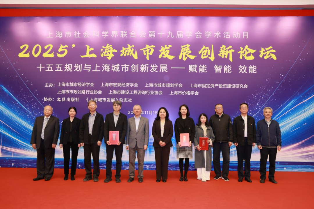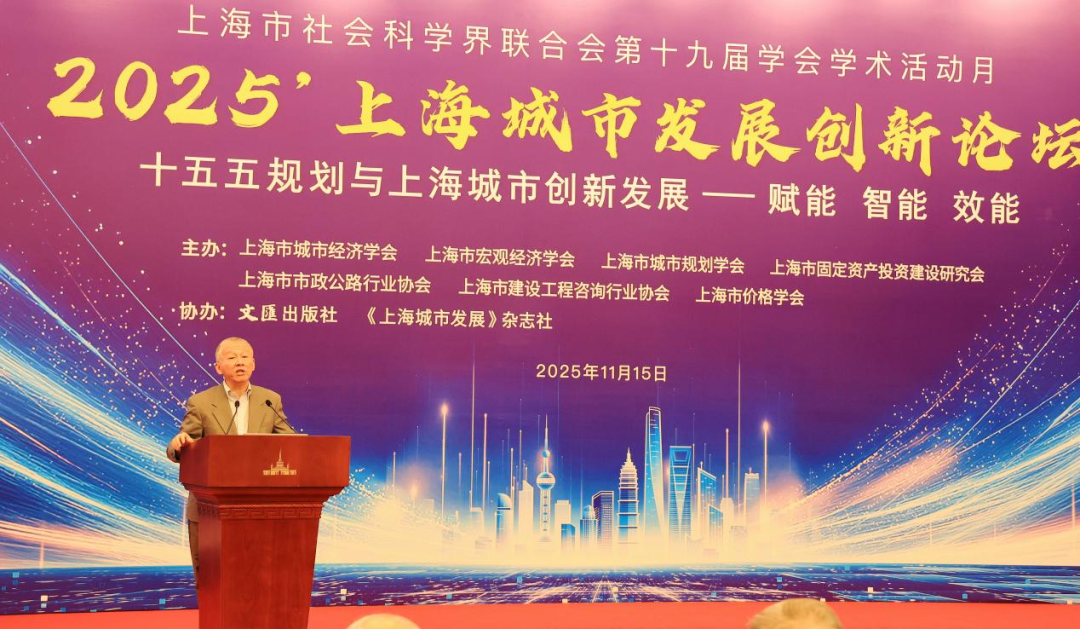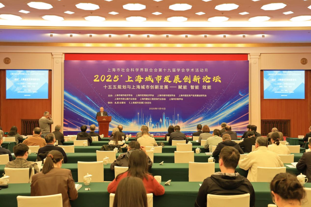 由上海市城市经济学会、上海市宏观经济学会、上海市城市规划学会、上海市固定资产投资建设研究会、上海市市政公路行业协会、上海市建设工程咨询行业协会、上海市价格学会联合举办的“2025’上海城市发展创新论坛(第十九届)”,于11月15日下午在上海展览中心友谊会堂成功举行。本届论坛主题为“十五五规划与上海城市创新发展——赋能、智能、效能”。论坛主办学会协会的领导、市社联、市住建委相关处室领导及会员代表和专家学者、协办单位文汇出版社、《上海城市发展》杂志社负责人等220余人出席了会议。本次论坛由上海市市政公路行业协会副会长??主持。我协会会长夏冰、党支部书记曹朔、副会长孙玉波、金菁、秘书长徐逢治、以及协会青联会执委会代表等出席了此次论坛。