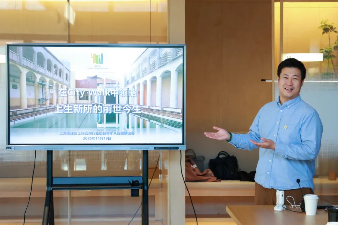 为深化城市更新背景下青年从业者对建设工程咨询行业的理解与实践,推动跨领域专业互动与经验共享,11月19日下午,上海市建设工程咨询行业协会青年从业者联谊会(以下简称“青联会”)在长宁区重点项目“上生新所”成功举办“在City Walk中探访上生新所的前世今生”主题活动,并与项目参建单位展开深入交流。本次活动特邀华东建筑设计研究院有限公司副总经理、副总建筑师宿新宝做专题讲解。来自15家会员单位的25位青年从业者参加了活动。