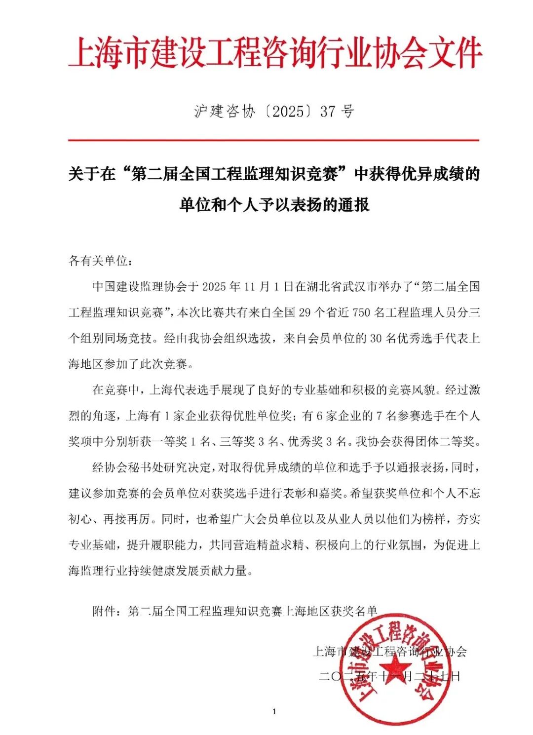 关于在“第二届全国工程监理知识竞赛”中获得优异成绩的单位和个人予以表扬的通报