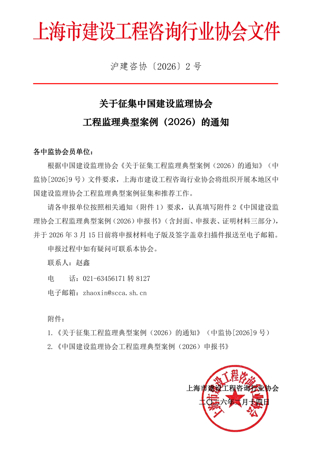 关于征集中国建设监理协会工程监理典型案例(2026)的通知
