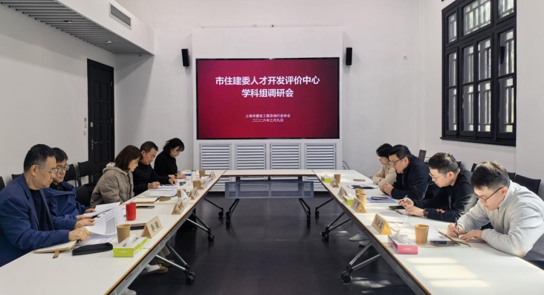 3月9日,市住房和城乡建设管理委员会人才开发评价中心一行赴我协会开展学科组调研。中心副主任阮洪、人才开发科科长史旻,我协会秘书长徐逢治,以及学科组评审专家等出席调研会议。